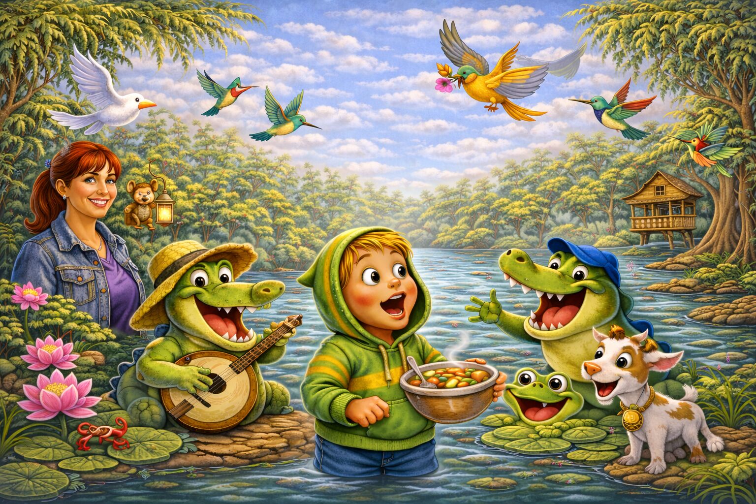 GumboPot Kids is a world of children’s stories where imagination runs wild in the Louisiana bayou. Rooted in the rich culture, humor, and heart of the South, every story is filled with playful adventures, unforgettable characters, and the charm of bayou life—from moss-covered trees to muddy paths and critters full of personality.