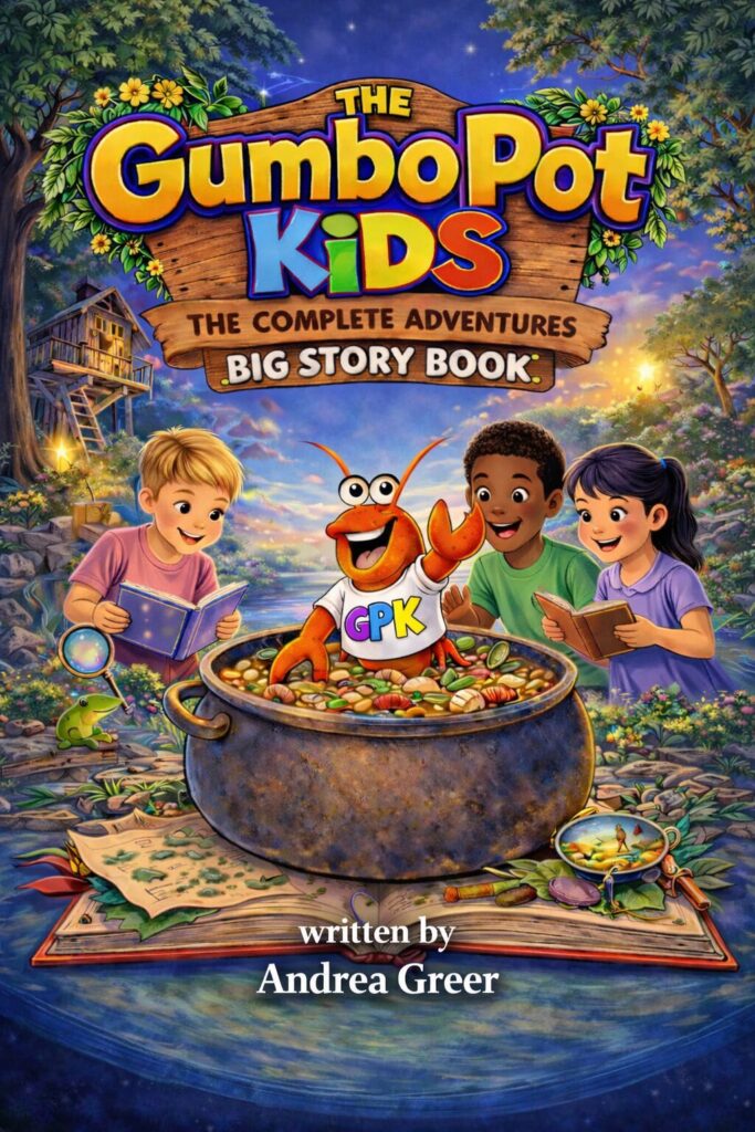 GumboPot Kids: Complete Adventure Storybook brings young readers into a fun-filled world of creative bayou creatures—from dancing goats and banjo-playing possums to curious crawfish and mischievous gators. Through exciting and humorous adventures, kids discover important lessons about kindness, honesty, courage, and making good choices.
